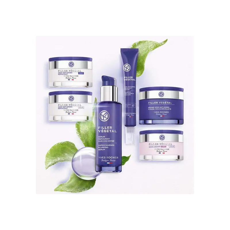 L’extrait d’Ice Plant* stimule la production naturelle d’acide hyaluronique** pour combler les rides***.