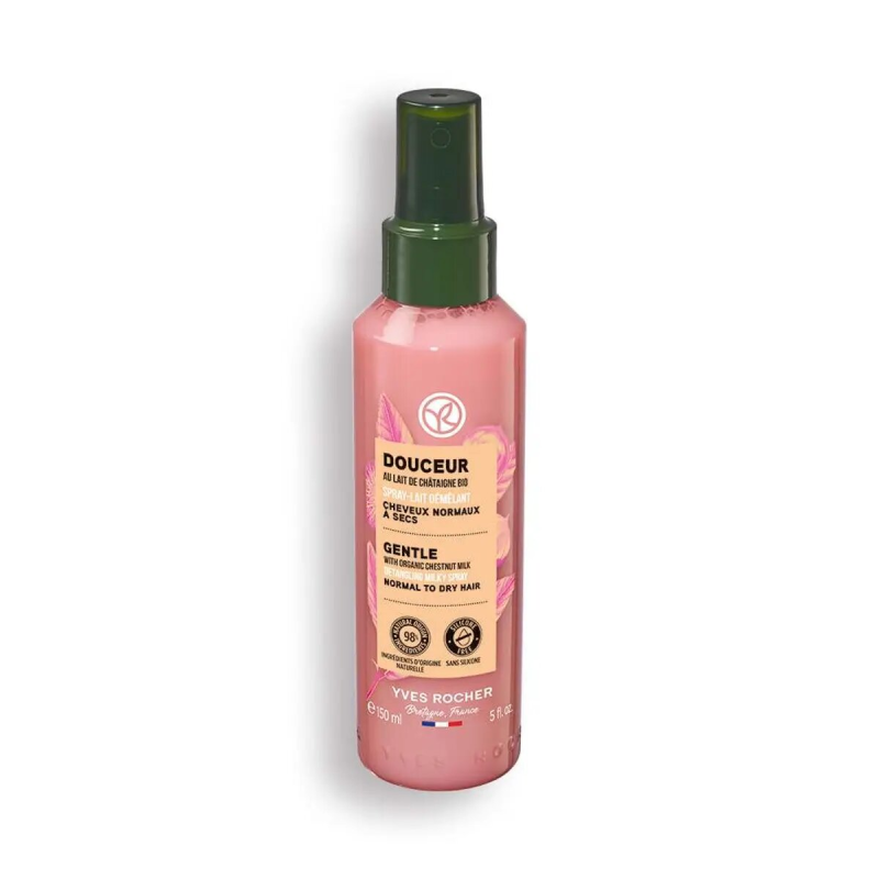 Enrichi en Lait de Châtaigne Bio, le Spray Démêlant Nourrissant démêle les cheveux jusqu’aux pointes, en un seul geste, sans les alourdir. Les cheveux sont doux, brillants, souples et faciles à coiffer.