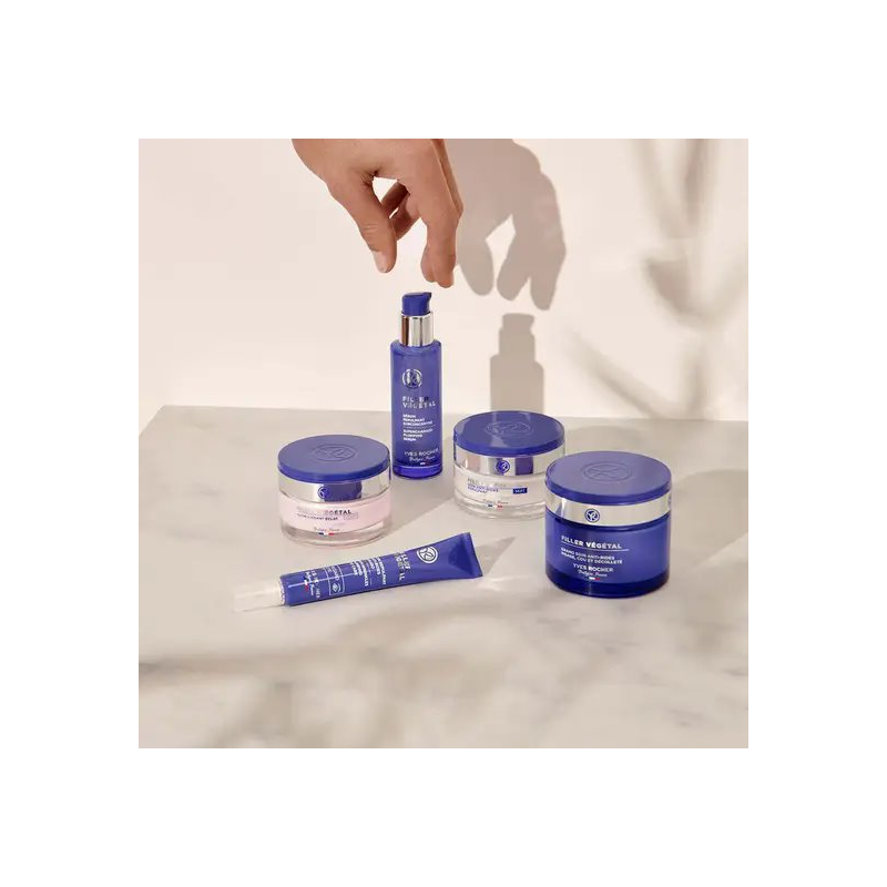 L’extrait d’Ice Plant* stimule la production naturelle d’acide hyaluronique** pour combler les rides***.