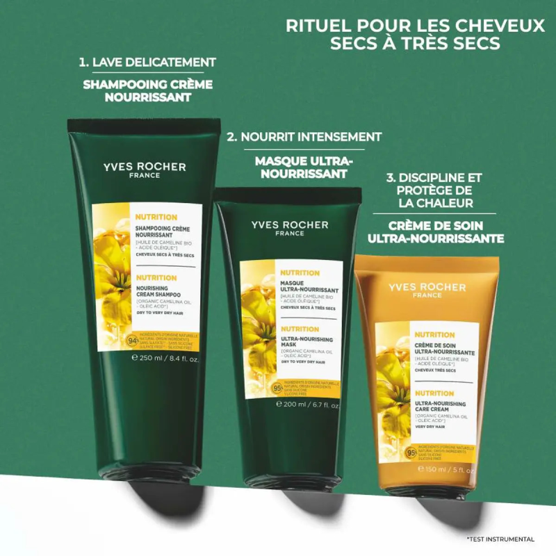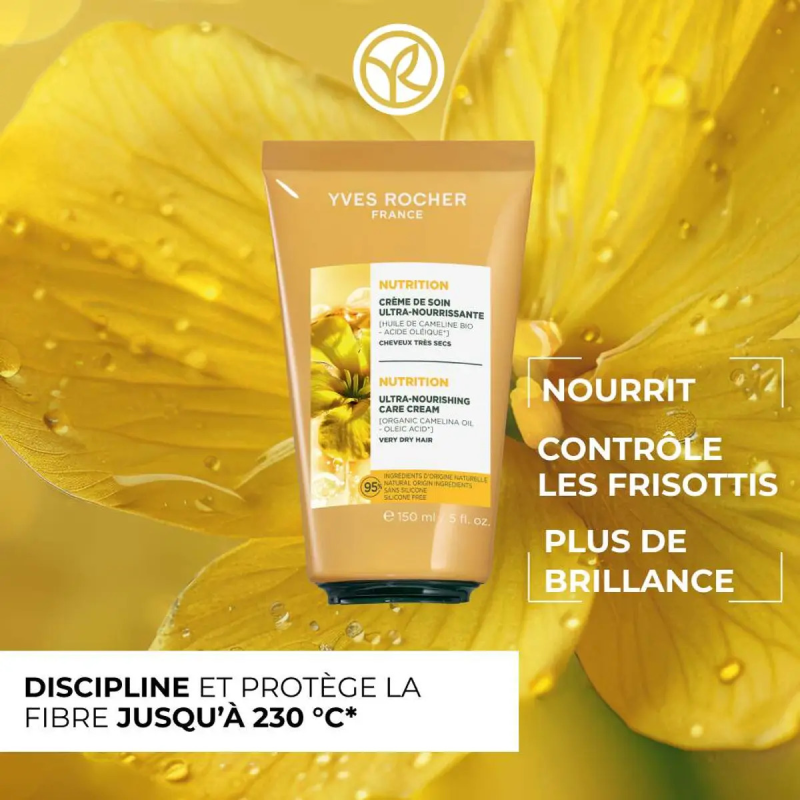 Cette crème à la texture riche et onctueuse nourrit et contrôle les frisottis