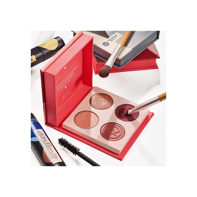 La 1ère palette Yves Rocher en carton certifié pour aider à préserver les forêts et ne contient pas de miroir pour réduire notre utilisation de plastique.